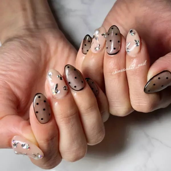 オールシーズン パーティー ハンド シースルー ドット Mano Nail Estheのネイルデザイン No ネイルブック ネイルデザイン ストーンネイルデザイン 上品ネイル